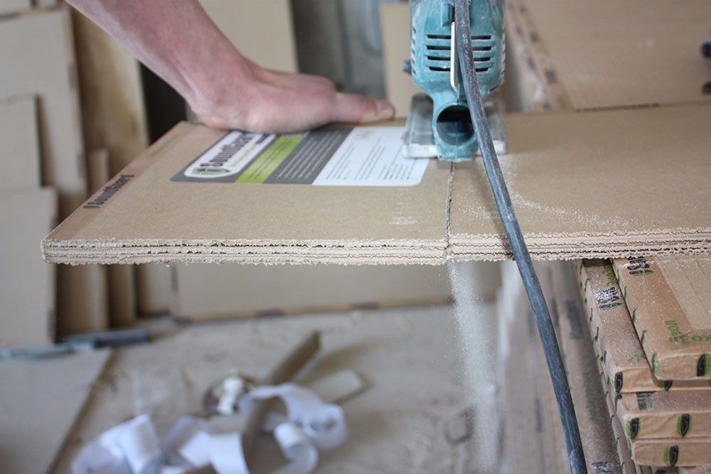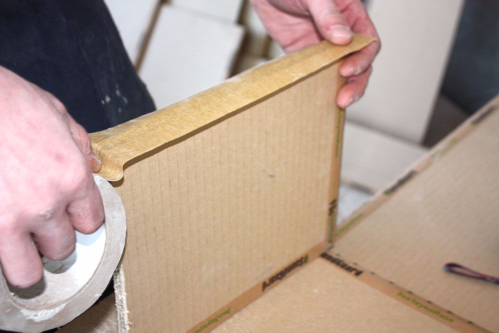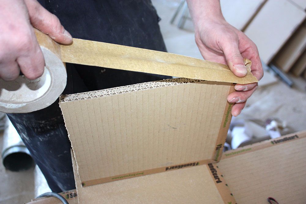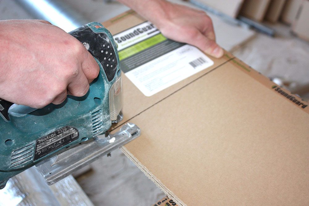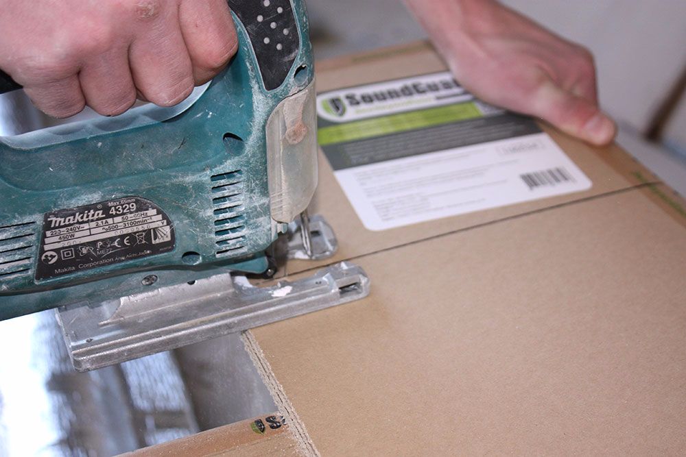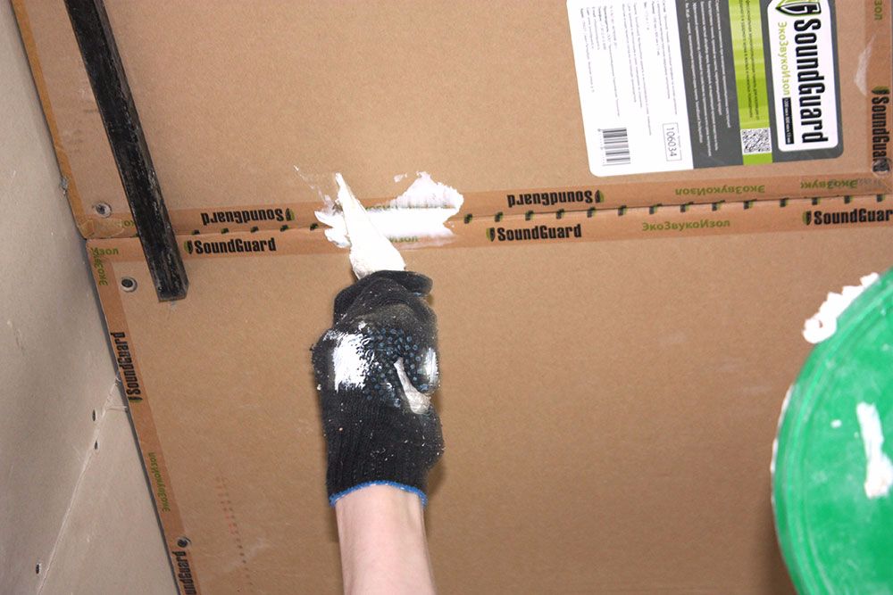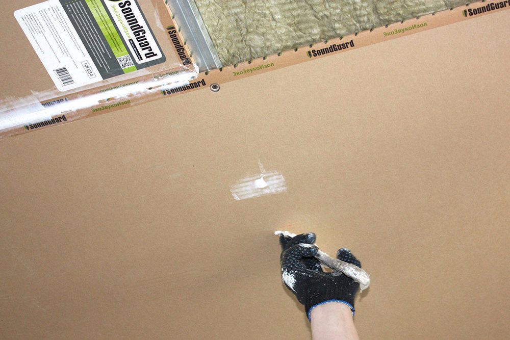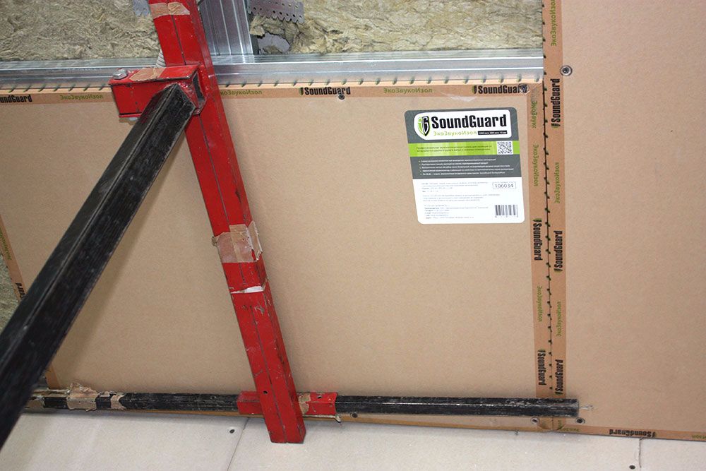 Устройство звукоизоляционных панелей - панель SoundGuard легко режется электролобзиком, циркуляционной пилой или ножовкой; - крепление выполняется с помощью акустического дюбель-гвоздя или саморезами при использовании металлокаркаса; - край реза проклеивается специальным скотчем; - стыки панелей, технические отверстия и места крепления подлежат обязательной герметизации. Поделиться