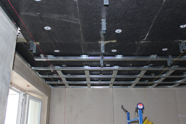 Монтаж плит"СтопЗвук" на потолок при каркасной системе для дополнительного подавления воздушного шума
