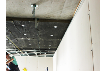 Монтаж плит "СтопЗвук БП Премиум" в системе шумоизоляции потолка