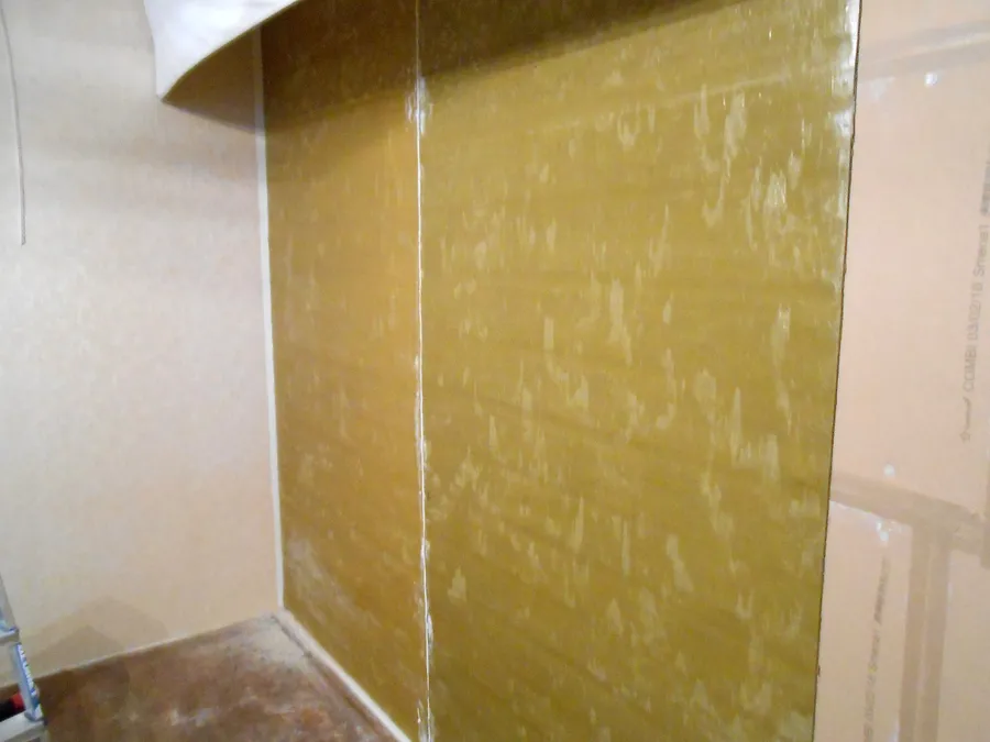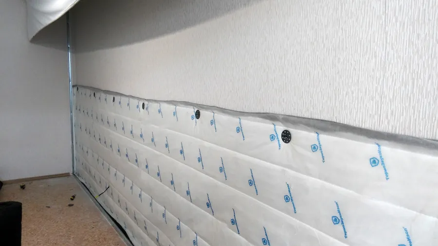 Монтаж материала "Виброфлор" из полиэфирного волокна в качестве демферного слоя в бескаркасной системе шумоизоляции стены