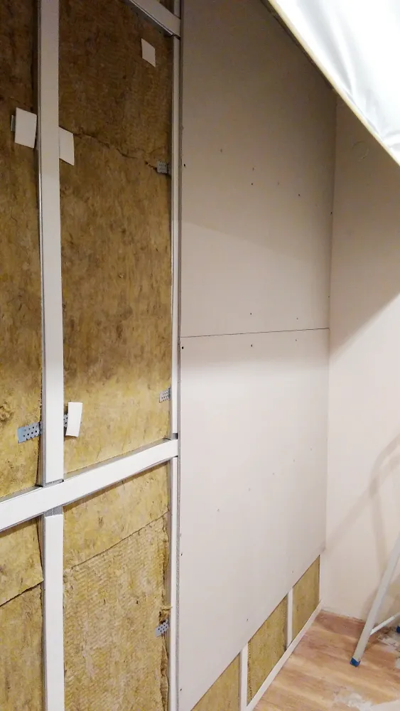 Монтаж системы звукоизоляции для угловой стены коридора в новостройке