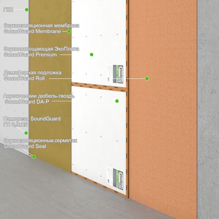 В бескаркасную звукоизоляционную систему "Премиум+" входит: