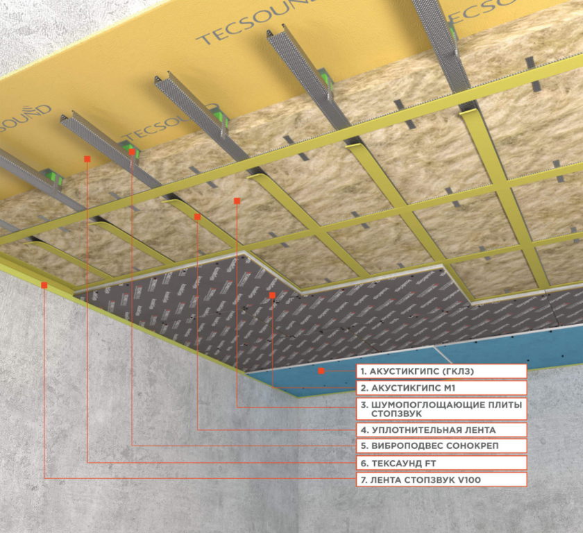 Эффективная система с максимальным показателем шумопоглощения и звукоизоляции. Применяется как в жилых домах и квартирах высокого уровня комфортности, так и в специальных помещениях (студии звукозаписи, переговорные комнаты, кино-концертные залы, рестораны, бары караоке и т.п.). Снижает передачу звука через стены и перекрытия во всем диапазане частот и делает его незаметным для восприятия человеком (при громкости в источнике до 80-85 дБ). Основным элементом системы является комплексная звукоизоляционная панель АкустикГипс М1.