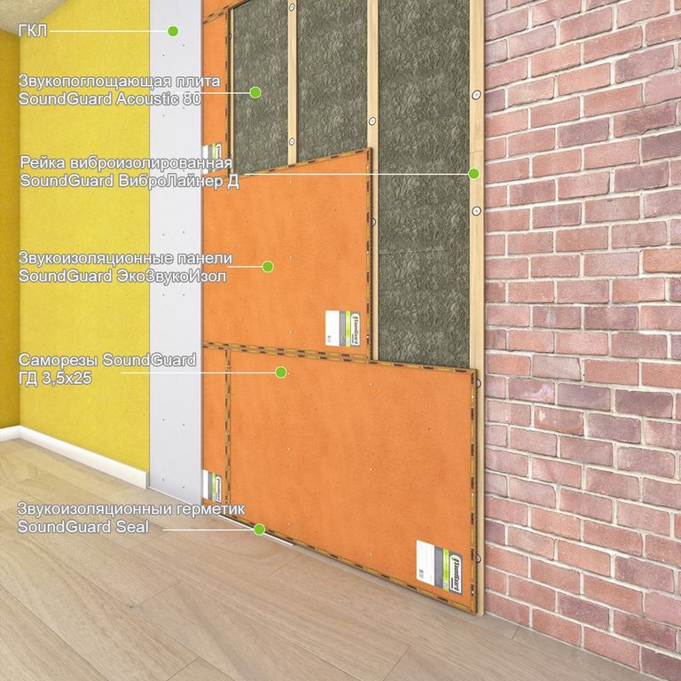 Монтаж последующих звукоизоляционных облицовок производить по технологии SoundGuard.