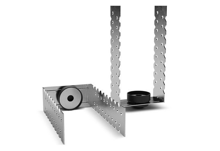 Экономичный прямой виброподвес с резиновым эластомером. Применяется в профильных конструкциях и системах звукоизоляции стен, перегородок и потолка в качестве защиты от вибраций и усиления акустических характеристик.