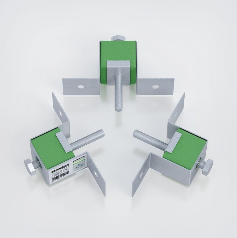 Увеличенная толщина эластомера позволяет добиться лучших виброизоляционных характеристик в своем классе. Применение в потолочном варианте крепления. Состоит из усиленного несущего металлического каркаса и П-образного усиленного монтажного элемента. Рабочей основой виброизоляционных креплений SoundGuard серии "Vibro" является упругий элемент из эластомера.