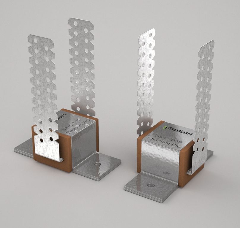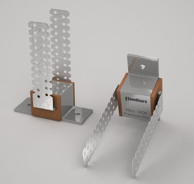 Разработанная нашими инженерами концептуально новая, не имеющая аналогов, система сборки изделия, с увеличенной толщиной эластомера. В следствии этого улучшаются виброизоляционные характеристики, что приводит к лучшим результатам. Состоит из усиленного несущего металлического каркаса и П-образного усиленного монтажного элемента. Рабочей основой виброизоляционных креплений SoundGuard, серии "Vibro" - является упругий элемент из эластомера.