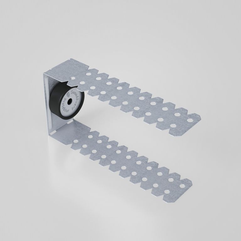 Виброподвес SoundGuard Protektor используется при монтаже металлокаркасных конструкций. Универсальность использования виброподвеса делает возможным применять его как на потолок, так и на стену.