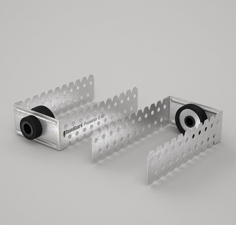 SoundGuard Protektor серии S 47 представляет собой П-образный несущий профиль с упругим элементом из резины, который исключает контакт основания и крепёжного элемента с несущим профилем. С его помощью обеспечивается снижение передачи структурного и ударного шума от перекрытия на каркас возводимой конструкции. Уникальная конструкция подвеса, разработанная инженерами компании "Звукоизоляционные Европейские Технологии", имеет ограничитель, обеспечивающий контроль фиксации упругого элемента по заданным техническим параметрам.