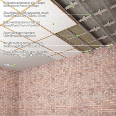 Материалы для каркасной звукоизоляции потолка в квартире - система "Премиум" RW = 57-62 дБ. Инженеры завода звукоизоляционных материалов "SoundGuar" подобрали лучшие материалы для звукоизоляции потолка и просчитали точное количество необходимых материалов.