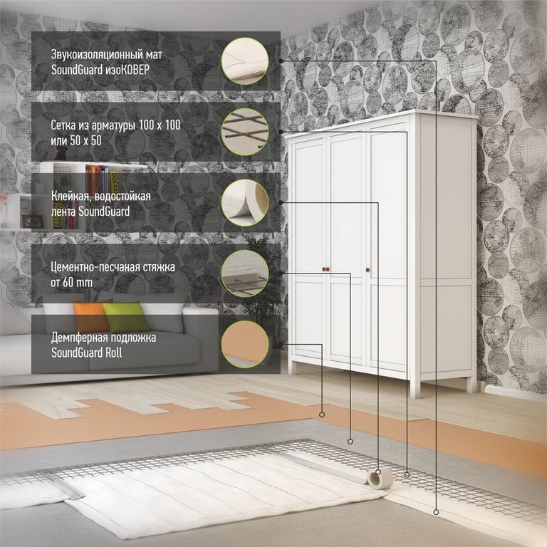 Звукоизоляция стяжки «Стандарт +" 635 ₽ В корзину Купить в 1 клик В корзину Купить в 1 клик Цена указана за кв. м. Каталог материалов для звукоизоляции и виброзащиты SoundGuard Звукоизоляционная панель SoundGuard. Инструкция по применению Альбом звукоизоляционных инженерных решений SoundGuard Цена указана за кв. м. Каталог материалов для звукоизоляции и виброзащиты SoundGuard Звукоизоляционная панель SoundGuard. Инструкция по применению Альбом звукоизоляционных инженерных решений SoundGuard Описание Комментарии 0 Описание Толщина - 75 мм, RW = 34 дБ. Звукоизоляция стяжки пола по системе "Стандарт", ΔLnw ≈ 34 дБ Основной материал для выполнения "плавающего пола" является тепло-звукоизоляционный мат SoundGuard изоКОВЕР! Материалы SoundGuard: ТЕПЛО-ЗВУКОИЗОЛЯЦИОННЫЙ МАТ SOUNDGUARD ИЗОКОВЕР ЛЕНТА АРМИРОВАННАЯ Комментарии 0 Добавить комментарий Поделиться